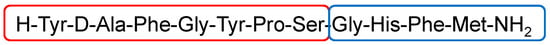 The amino acid sequence of LENART01. The dermorphin pharmacophore is framed in red, and the ranatensin analogue pharmacophore is framed in blue.