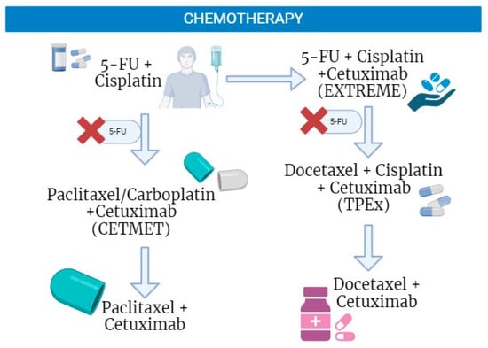 - Tsakonas, G.; Specht, L.; Kristensen, C.A.; Moreno, M.H.C.; Cange, H.H.; Soderstrom, K.; Friesland, S. Randomized Phase II Study with Cetuximab in Combination with 5-FU and Cisplatin or Carboplatin vs. Cetuximab in Combination with Paclitaxel and Carboplatin for Treatment of Patients with Relapsed or Metastatic Squamous Cell Carcinoma of the Head and Neck (CETMET Trial). Cancers 2020, 12, 3110. [Google Scholar] [CrossRef]