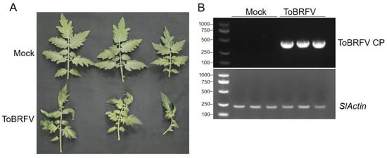 Wang, D.; Chen, M.; Peng, J.; Zheng, H.; Lu, Y.; Wu, G.; Wu, J.; Li, J.; Chen, J.; Yan, F.; et al. Transcriptome Analysis of Tomato Leaves Reveals Candidate Genes Responsive to Tomato Brown Rugose Fruit Virus Infection. Int. J. Mol. Sci. 2024, 25, 4012. https://doi.org/10.3390/ijms25074012