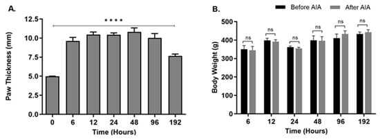 2.1. Changes in Hind Paw Edema and Body Weight