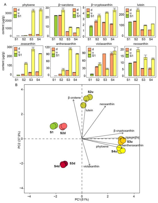 4.2. Metabolomic Analysis of Flavonoids and Carotenoids