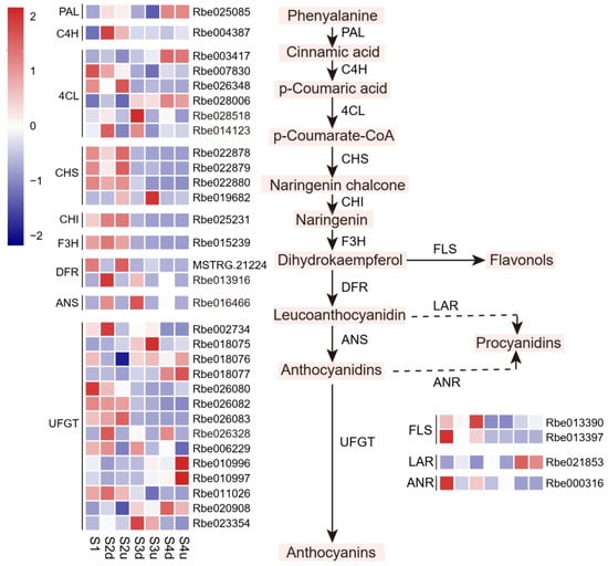 2.5. Expression Profiles of Genes Related to Anthocyanin Biosynthesis Involved in Blotch Formation