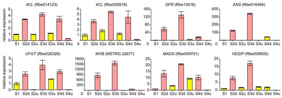 - Li, M.; Zhang, H.; Yang, Y.; Wang, H.; Xue, Z.; Fan, Y.; Sun, P.; Zhang, H.; Zhang, X.; Jin, W. Rosa1, a transposable element-like insertion, produces red petal coloration in rose through altering RcMYB114 transcription. Front. Plant Sci. 2022, 13, 857684. [Google Scholar] [CrossRef]