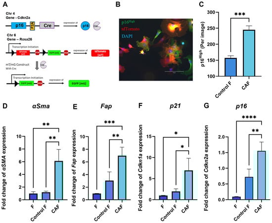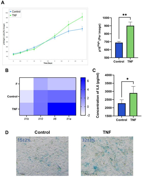 2.2. TNF Signaling Induces Senescence in Murine CAFs