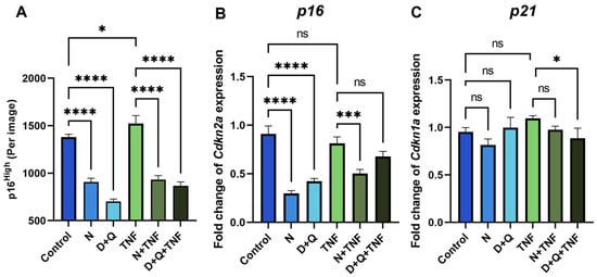 - Grigorash, B.B.; van Essen, D.; Liang, G.; Grosse, L.; Emelyanov, A.; Kang, Z.; Korablev, A.; Kanzler, B.; Molina, C.; Lopez, E.; et al. P16High Senescence Restricts Cellular Plasticity during Somatic Cell Reprogramming. Nat. Cell Biol. 2023, 25, 1265–1278. [Google Scholar] [CrossRef] [PubMed]
