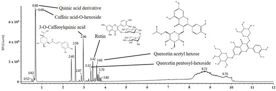UPLC Q-TOF/MSE chromatogram of the aqueous extract of Eucommia ulmoides leaves (AEEL).