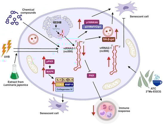 - Kim, Y.; Ji, H.; Cho, E.; Park, N.-H.; Hwang, K.; Park, W.; Lee, K.-S.; Park, D.; Jung, E. nc886, a non-coding RNA, is a new biomarker and epigenetic mediator of cellular senescence in fibroblasts. Int. J. Mol. Sci. 2021, 22, 13673. [Google Scholar] [CrossRef] [PubMed]