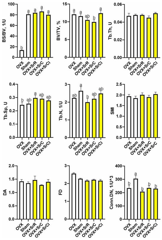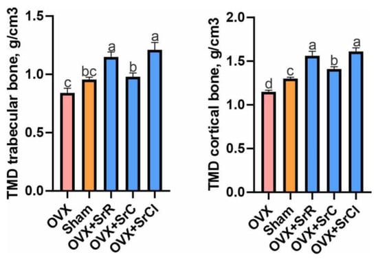 Tomczyk-Warunek A, Turżańska K, Posturzyńska A, Kowal F, Blicharski T, Pano IT, Winiarska-Mieczan A, Nikodem A, Dresler S, Sowa I, et al. Influence of Various Strontium Formulations (Ranelate, Citrate, and Chloride) on Bone Mineral Density, Morphology, and Microarchitecture: A Comparative Study in an Ovariectomized Female Mouse Model of Osteoporosis. International Journal of Molecular Sciences. 2024; 25(7):4075. https://doi.org/10.3390/ijms25074075
