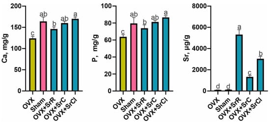4.4. Analysis of the Content of Calcium, Phosphorus, and Strontium in the Mineral Fraction of Bone Tissue