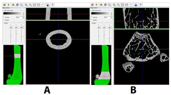 - Bouxsein, M.L.; Boyd, S.K.; Christiansen, B.A.; Guldberg, R.E.; Jepsen, K.J.; Müller, R. Guidelines for Assessment of Bone Microstructure in Rodents Using Micro–Computed Tomography. J. Bone Miner. Res. 2010, 25, 1468–1486. [Google Scholar] [CrossRef] [PubMed]