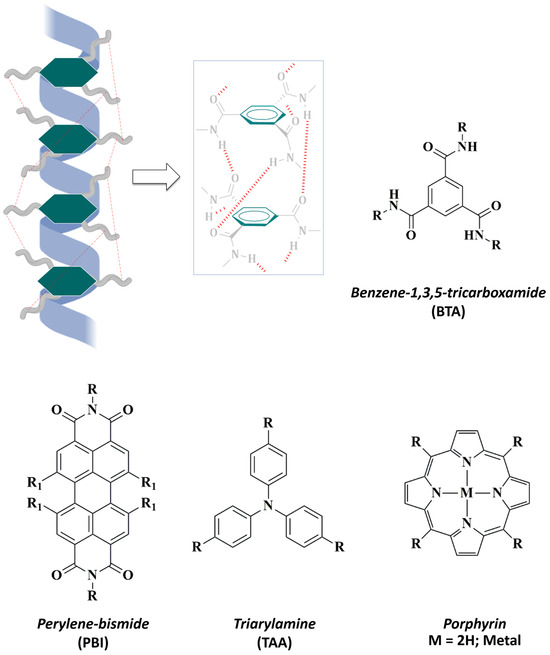 - Van Gorp, J.J.; Vekemans, J.A.J.M.; Meijer, E.W. Supramolecular Architectures of C 3 -Symmetrical and Asymmetrical Discotics. Mol. Cryst. Liq. Cryst. 2003, 397, 191–205. [Google Scholar] [CrossRef]