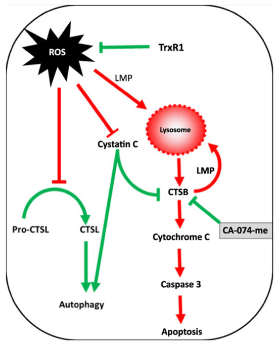On the other hand, the proteolytic activity of cathepsins can target the enzymes responsible for ROS generation [24]. More information about this phenomenon is provided in the text below.