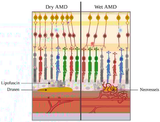 - Hernández-Zimbrón, L.F.; Zamora-Alvarado, R.; Ochoa-De la Paz, L.; Velez-Montoya, R.; Zenteno, E.; Gulias-Cañizo, R.; Quiroz-Mercado, H.; Gonzalez-Salinas, R. Age-Related Macular Degeneration: New Paradigms for Treatment and Management of AMD. Oxid. Med. Cell. Longev. 2018, 2018, 8374647. [Google Scholar] [CrossRef] [PubMed]