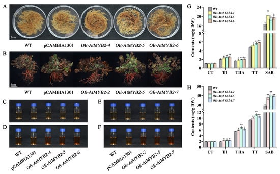 Chicago/Turabian StyleLi, Tianyu, Shuangshuang Zhang, Yidan Li, Lipeng Zhang, Wenqin Song, and Chengbin Chen. 2024. "Overexpression of AtMYB2 Promotes Tolerance to Salt Stress and Accumulations of Tanshinones and Phenolic Acid in Salvia miltiorrhiza" International Journal of Molecular Sciences 25, no. 7: 4111. https://doi.org/10.3390/ijms25074111