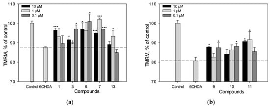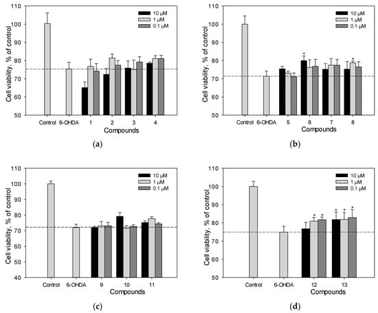 4.6. In Vitro Model of 6-OHDA and PQ-Induced Neurotoxicity (Cell Viability Test)
