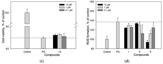 2.6. Cell Viability and Reactive Oxygen Species (ROS) Analysis in PQ-Treated Cells