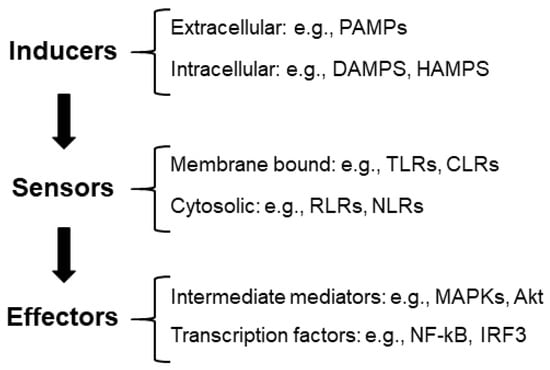 - De Nardo, D. Activation of the innate immune receptors: Guardians of the micro galaxy: Activation and functions of the innate immune receptors. Adv. Exp. Med. Biol. 2017, 1024, 1–35. [Google Scholar]