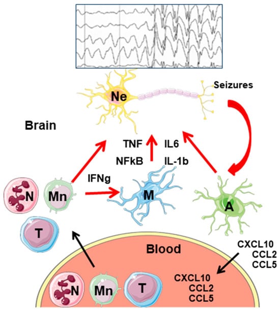 - Vezzani, A.; Balosso, S.; Ravizza, T. Neuroinflammatory pathways as treatment targets and biomarkers in epilepsy. Nat. Rev. Neurol. 2019, 15, 459–472. [Google Scholar] [CrossRef]