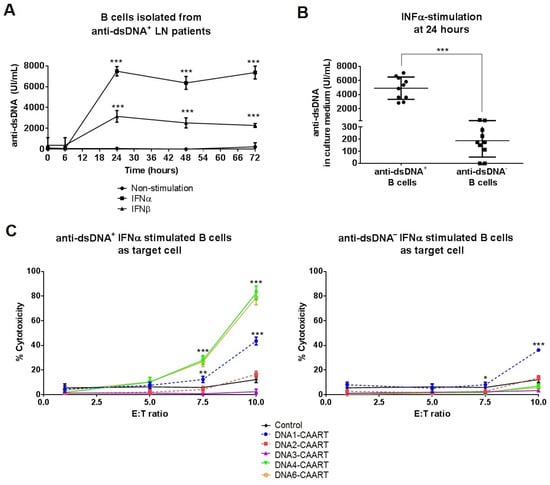 2.3. DNA4 and DNA6-CAART Show Higher Selective Depletion of Anti-dsDNA+ B Cells