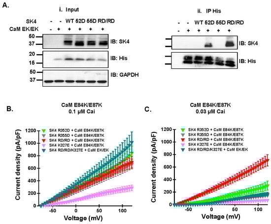| RD/RD/K327E | N/A | 9/1 | 75 ± 30 p < 0.001 v. SK4 WT + native CaM | 10/1 | 97 ± 31 p < 0.001 v. SK4 WT + CaM WT |