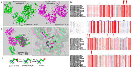 - Hai, Y.; Huang, A.M.; Tang, Y. Structure-guided function discovery of an NRPS-like glycine betaine reductase for choline biosynthesis in fungi. Proc. Natl. Acad. Sci. USA 2019, 116, 10348–10353. [Google Scholar] [CrossRef] [PubMed]