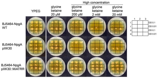 2.3. Heterologous Miatrr Expression in Yeast Can Overcome the Growth Inhibition Caused by High Concentrations of Glycine Betaine