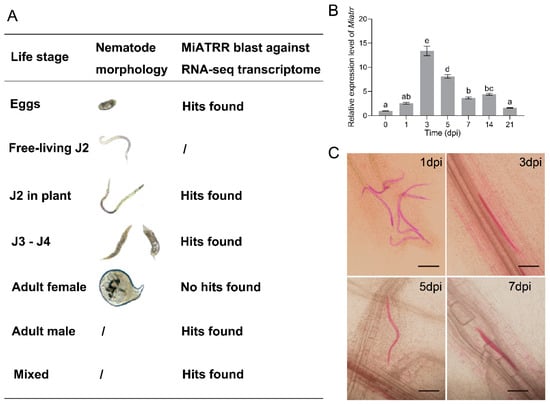 2.4. Upregulated Expression of Miatrr in the Early Infection Stage of M. incognita (Parasitic J2s)