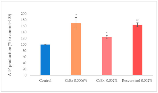 2.2.2. Effect of CsEx on ATP Production In Vitro and Boosting Skin Energy In Vivo