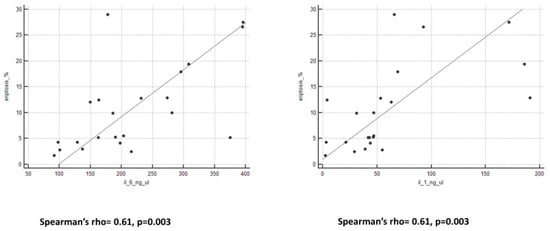 p = 0.001; IL-6: Spearman’s rho = 0.60,