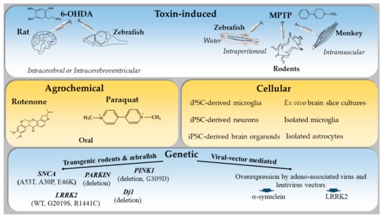 The most commonly used animal models in the study of the immune system in PD are briefly described below.