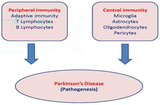 The role of peripheral and central immunity in the pathogenesis of PD is shown schematically in Figure 2.