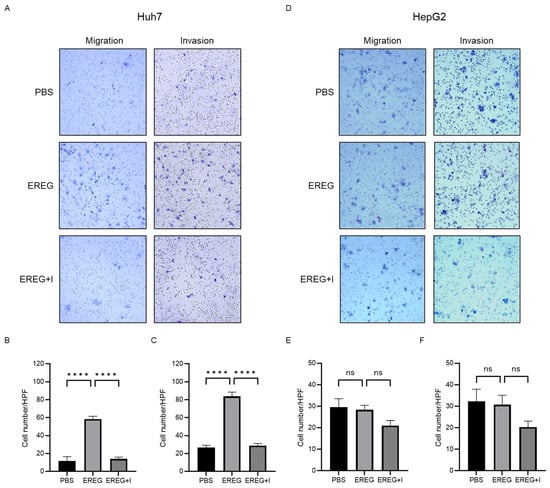 2.4. EREG Drives the Cell Migration and Invasion Activity of Liver Cancer Cells with EGFR