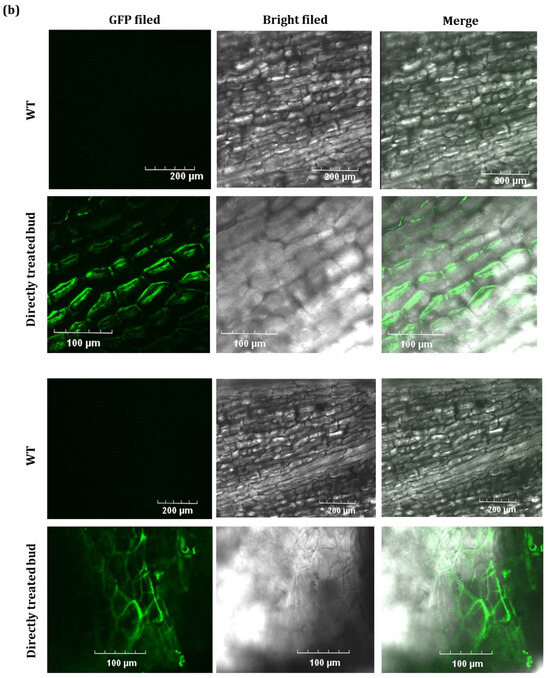 2.2. GFP Expressed from TRV2-GFP-PlHB31 in Infiltrated Organs