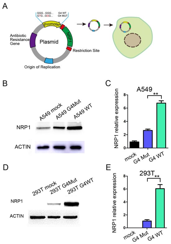 2.3. The G-Quadruplex Structures in the Promoter Increase the Expression Levels of NRP1