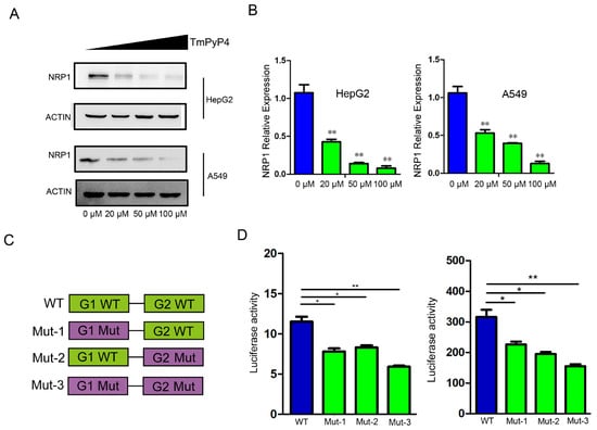 2.4. Sequestration or Disruption of G4 Structures in the Promoter Inhibits the Expression Levels of NRP1