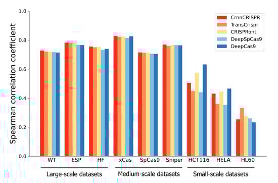 - Kim, H.K.; Kim, Y.; Lee, S.; Min, S.; Bae, J.Y.; Choi, J.W.; Park, J.; Jung, D.; Yoon, S.; Kim, H.H. SpCas9 activity prediction by DeepSpCas9, a deep learning–based model with high generalization performance. Sci. Adv. 2019, 5, eaax9249. [Google Scholar] [CrossRef] [PubMed]