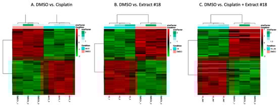 Similarly, the combination of cisplatin with extract #18 demonstrated effects similar to extract #18 alone. Notably, there was a significant decrease in the expression of