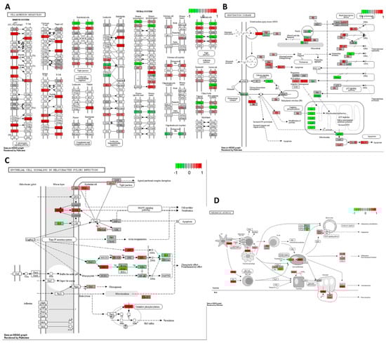 Figure 12E illustrates the action of cisplatin in combination with extract #18 on multiple pathways involved in the immune system response. The action closely paralleled that of cisplatin alone. There was an increased expression of the genes encoding MHC class II responsible for antigen presentation, ICAM1 enhancing cellular adhesion and pro-inflammatory IL-1β. Moreover, there was an upregulation of