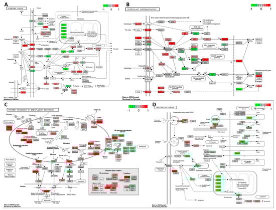 The RNA samples were shipped to Génome Québec (Montréal, QC, Canada) for library preparation and sequencing. The stranded mRNA libraries were prepared using NEBNext® Ultra™ RNA Library Prep Kit for Illumina® (New England BioLabs, Ipswitch, MA, USA). Sequencing was performed using Illumina NovaSeq6000 (San Diego, CA, USA) S4 PE 100 bp—25 M reads.