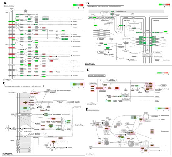Figure 12B. These transcription factors play a role in Wnt signalling, which is often dysregulated in the canonical subtype of CRC. Our treatment notably decreased the expression of mRNAs encoding integrins, laminin, and actin, crucial components involved in cell–extracellular matrix interactions. Additionally, there was a decrease in the expression of proteins involved in adherent and desmosomal junction formation, which are vital for cell-to-cell interactions. The disruption of cytoskeletal structures and junction formation may hinder the epithelial-to-mesenchymal transition (EMT) of cancer cells and suppress their invasive potential.