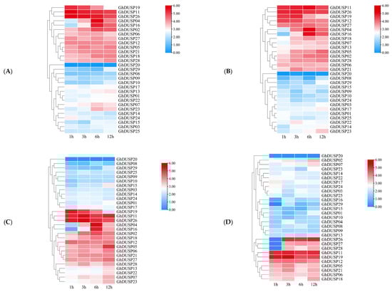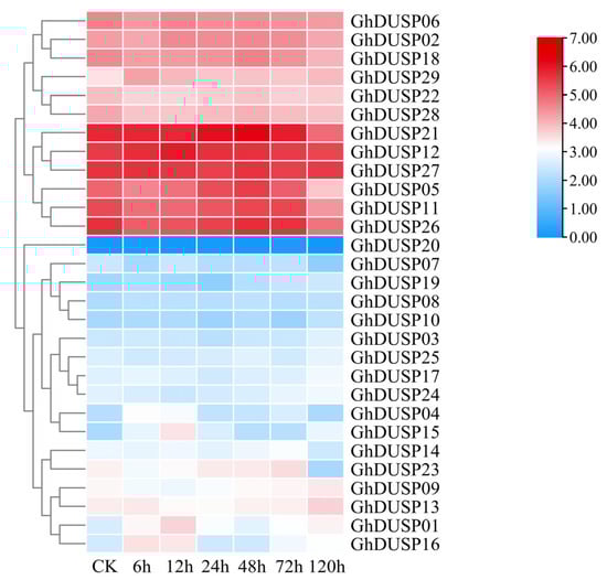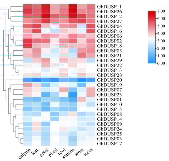 2.7. Tissue-Specific Examination of Gene Expression within the GhDUSPs