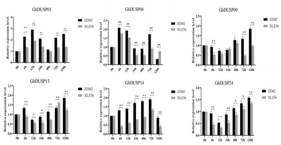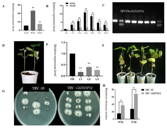 2.10. Detection of Verticillium wilt GhDUSPs Using qRT-PCR