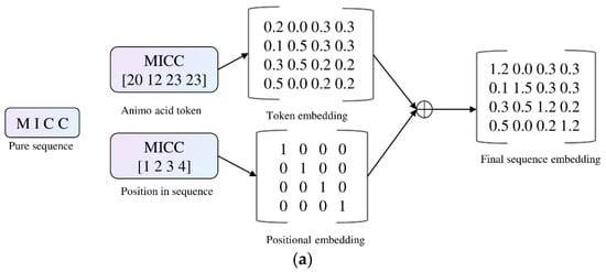 Many researchers have employed machine learning and deep learning techniques, including neural networks [,], SVM [], RF [], etc. []. However, within the realm of bioinformatics, natural language processing (NLP) models are increasingly gaining researchers’ interest []. Word embeddings are widely utilized for NLP tasks to capture semantic characteristics and linguistic relationships within text data, converting raw text into numerical vectors or metrics that facilitate the development of machine learning (ML) models []. Notably, protein sequences bear a resemblance to natural languages in human beings, as they are constructed from different amino acids, effectively forming a ‘language of life’ []. Recently, a new generation of deep-learning-based language models has emerged, which is designed to generate embeddings for protein sequences. These models, such as ESM-2 [], UniRep [], and ProtTrans [], are trained on extensive protein sequence datasets and excel at creating informative protein representations solely from sequence information.
