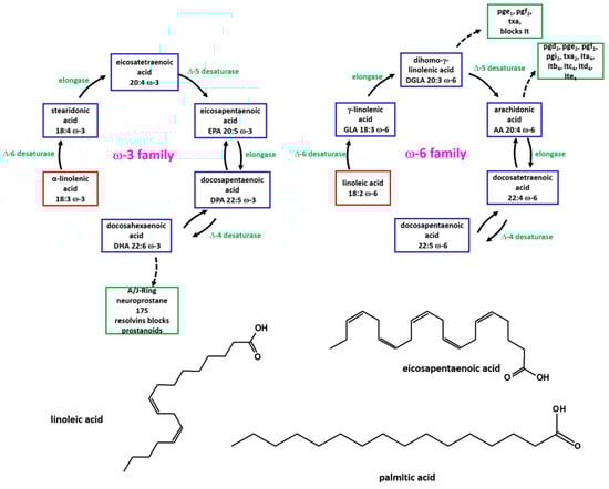 - Watkins, P.A. Fatty acids: Metabolism. Encycl. Hum. Nutr. 2013, 2–4, 220–230. [Google Scholar] [CrossRef]