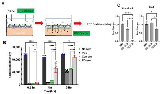 4.10. Human In Vitro Blood–Brain Barrier Model Culture and PD EXO Treatment