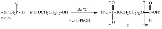- Pretula, J.; Penczek, S. High-molecular-weight poly (alkylene phosphonate) s by condensation of dialkylphosphonates with diols. Makromol. Chem. 1990, 191, 671–680. [Google Scholar] [CrossRef]