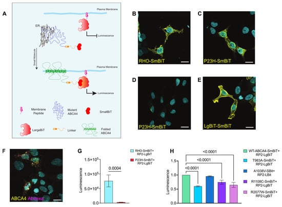 Piccolo, D.; Zarouchlioti, C.; Bellingham, J.; Guarascio, R.; Ziaka, K.; Molday, R.S.; Cheetham, M.E. A Proximity Complementation Assay to Identify Small Molecules That Enhance the Traffic of ABCA4 Misfolding Variants. Int. J. Mol. Sci. 2024, 25, 4521. https://doi.org/10.3390/ijms25084521