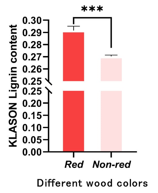 - Özparpucu, M.; Gierlinger, N.; Burgert, I.; Van Acker, R.; Vanholme, R.; Boerjan, W.; Pilate, G.; Dejardin, A.; Ruggeberg, M. The effect of altered lignin composition on mechanical properties of CINNAMYL ALCOHOL DEHYDROGENASE (CAD) deficient poplars. Planta 2018, 247, 887–897. [Google Scholar] [CrossRef]