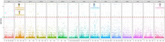 2.4. SNP Identification and Analysis of the Candidate Gene of Tortuous Stem