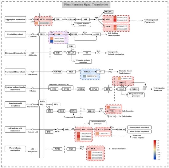 2.6. Analysis of Plant Hormone Signaling Pathways and Related Genes